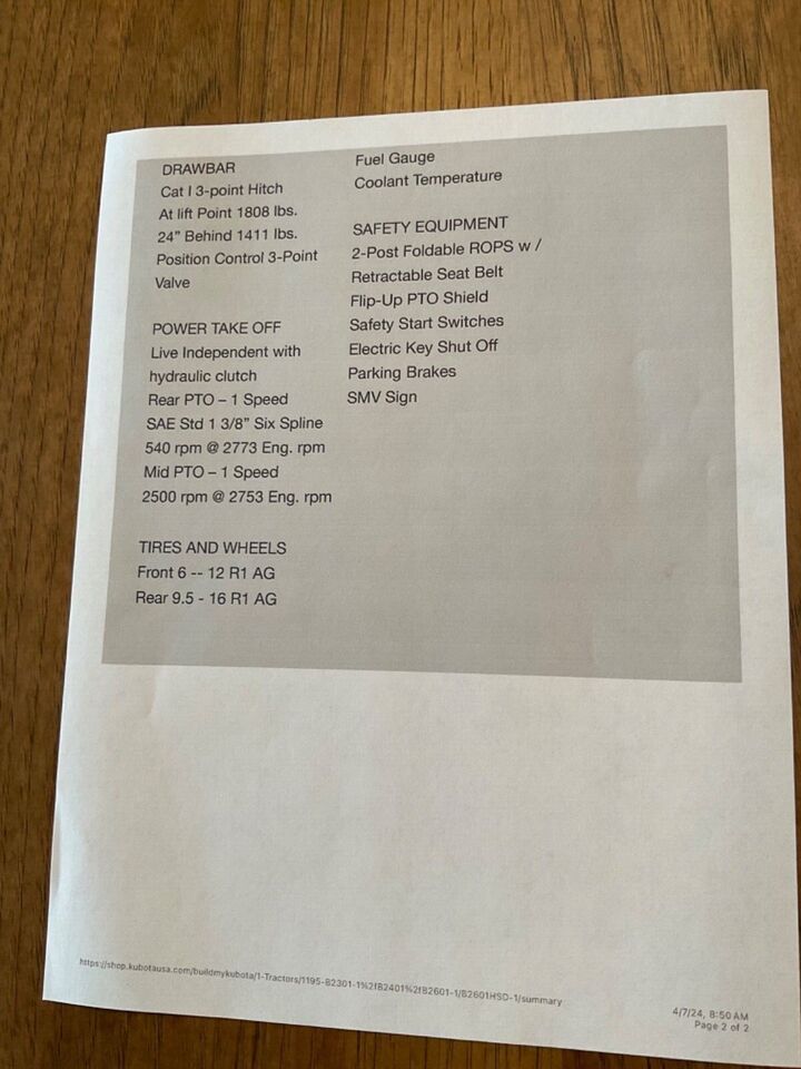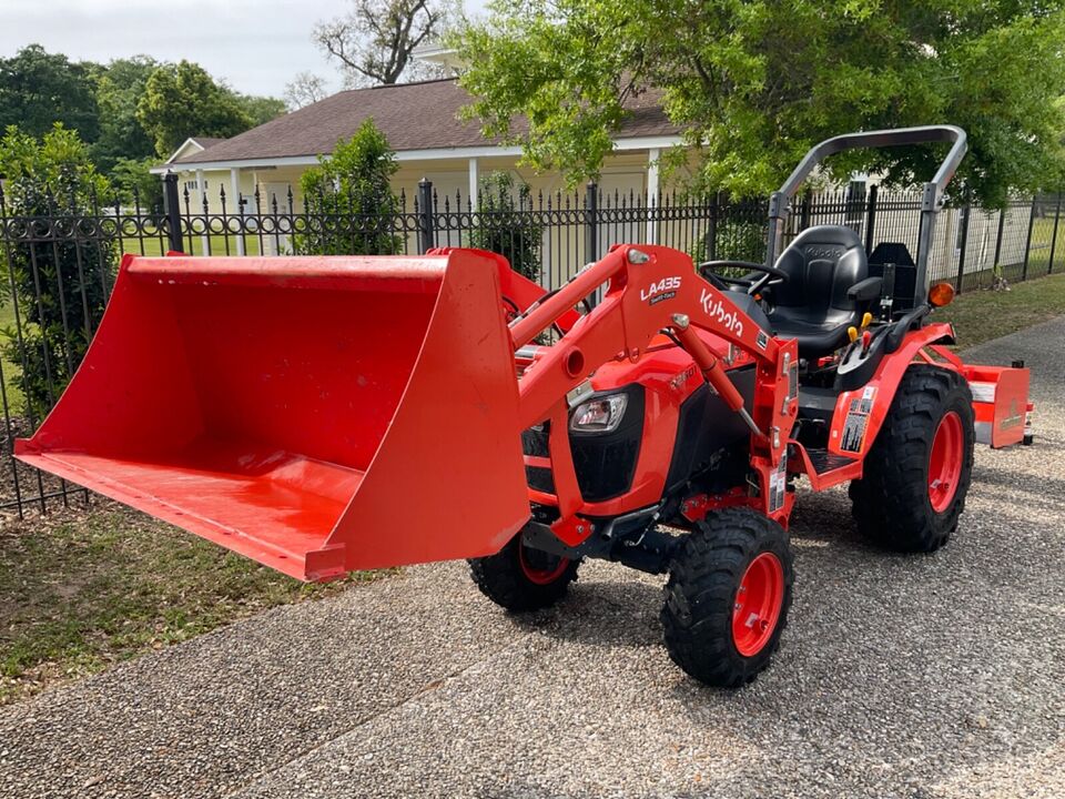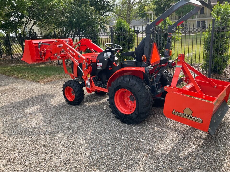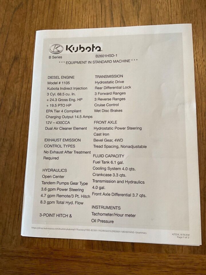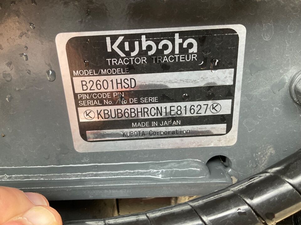 Tato nabídka se týká stroje Kubota B2601 HSD z roku 2022, který má aktuálně najeto 28 hodin a je ve stavu jako nový. Součástí je čelní nakladač LA435 a skříňový nůž Land pride 48″. Traktor byl po celou dobu skladován uvnitř. Součástí je 3bodový závěs náhradní klíč a všechny příručky.